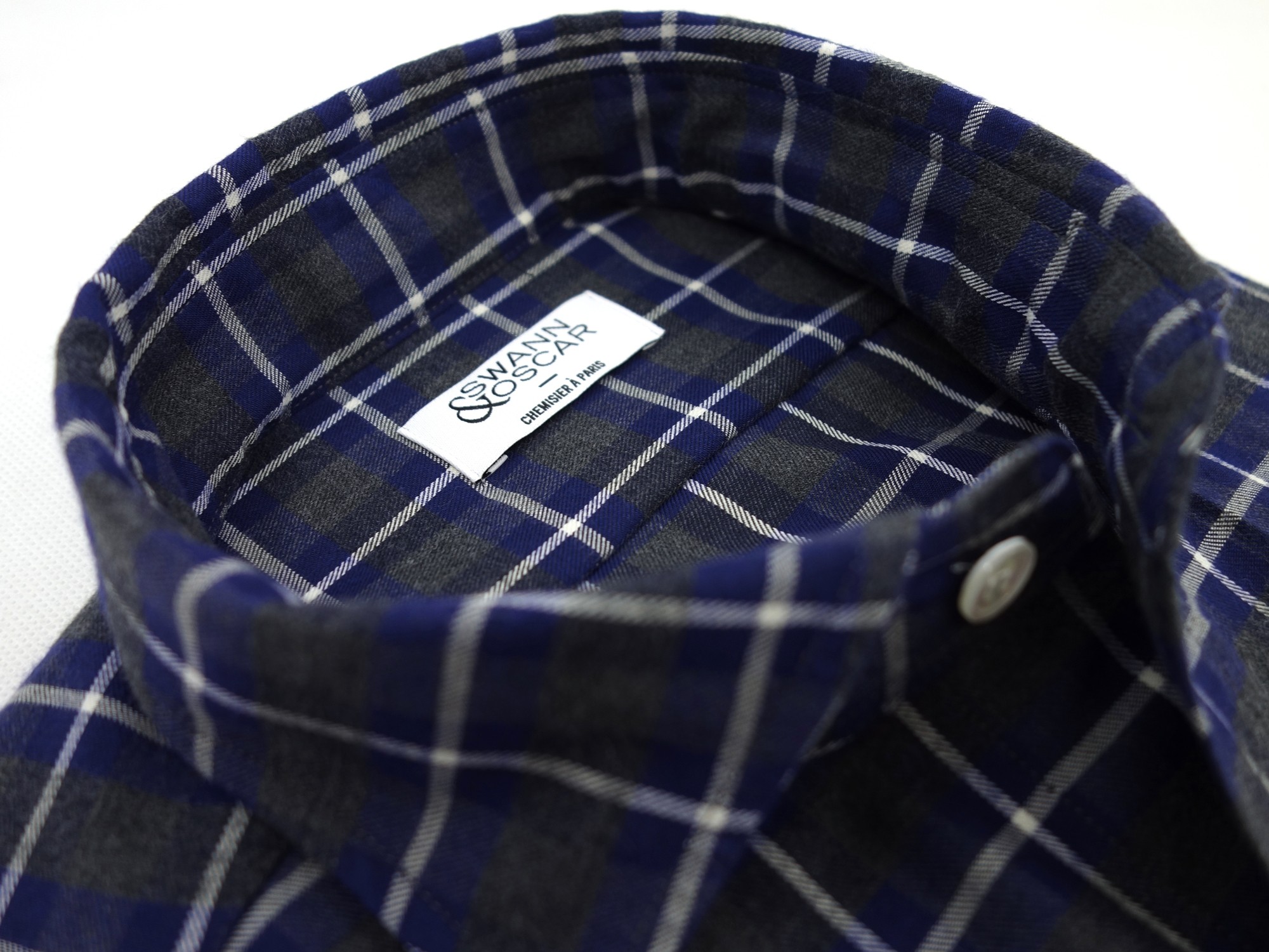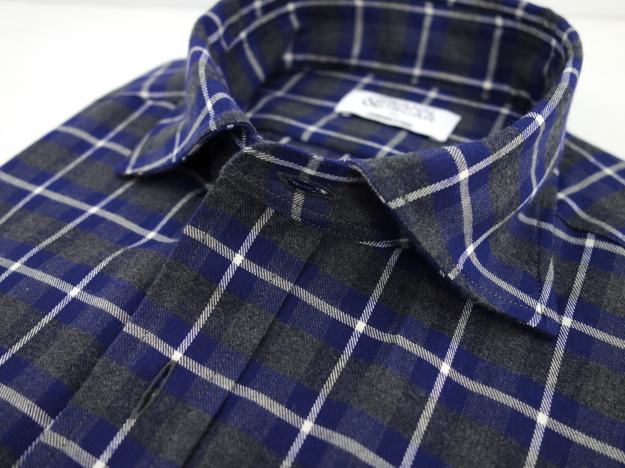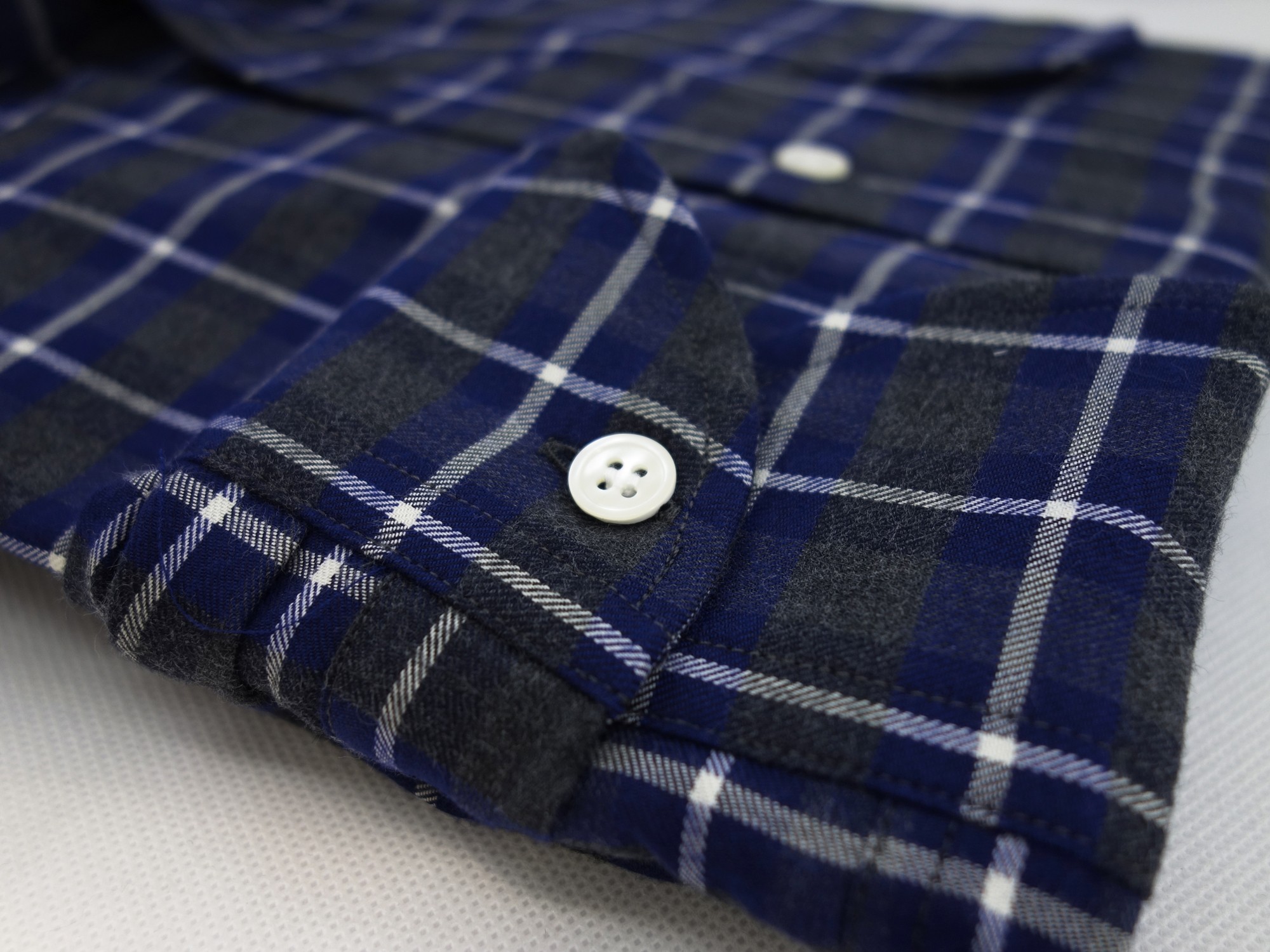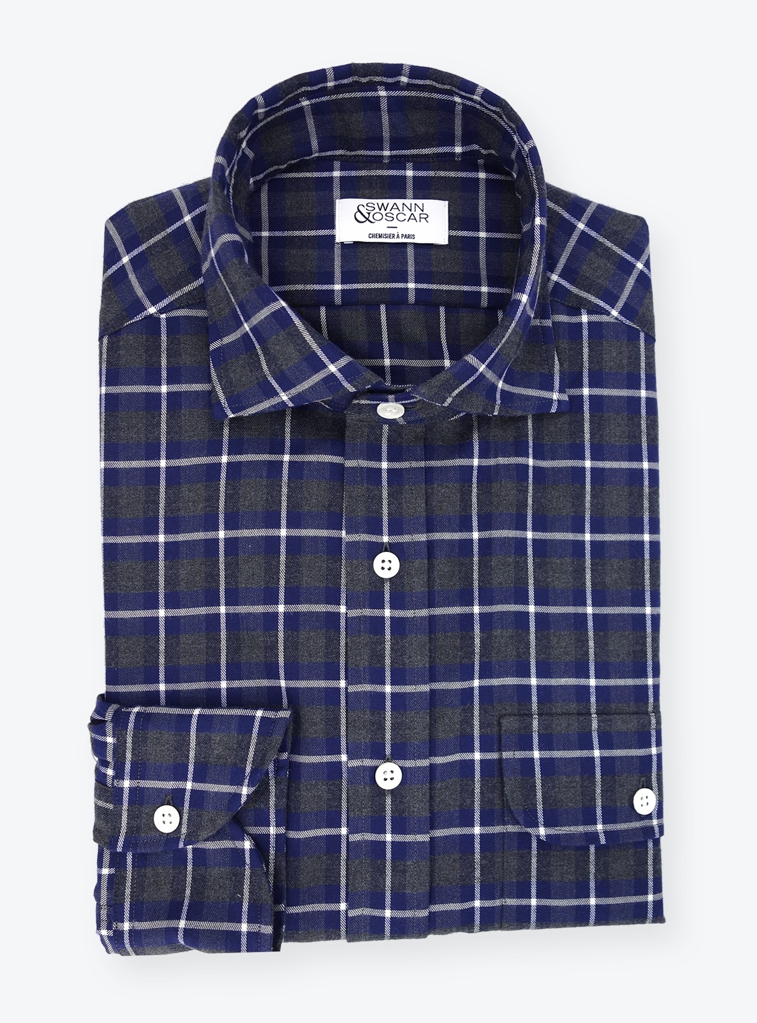 Flanelle de coton de chez Thomas Mason gris et bleu. Il s'agit d'un tissu de la collection hiver Thomas Mason en édition limitée. Tissu doux et très confortable pour l'hiver.