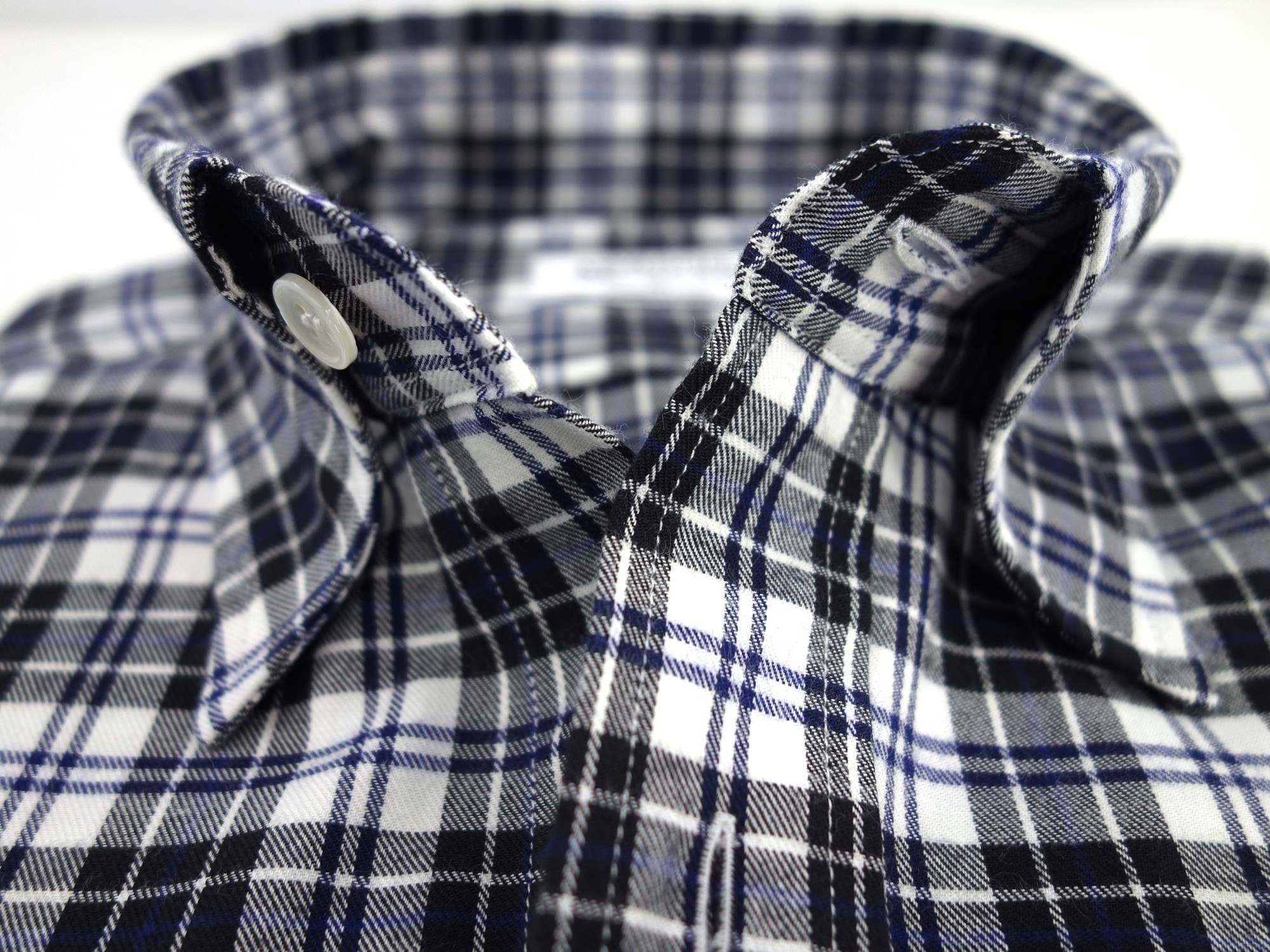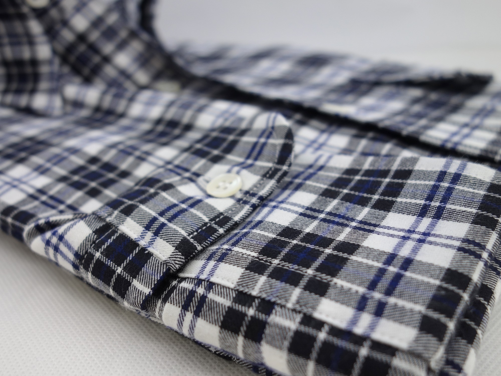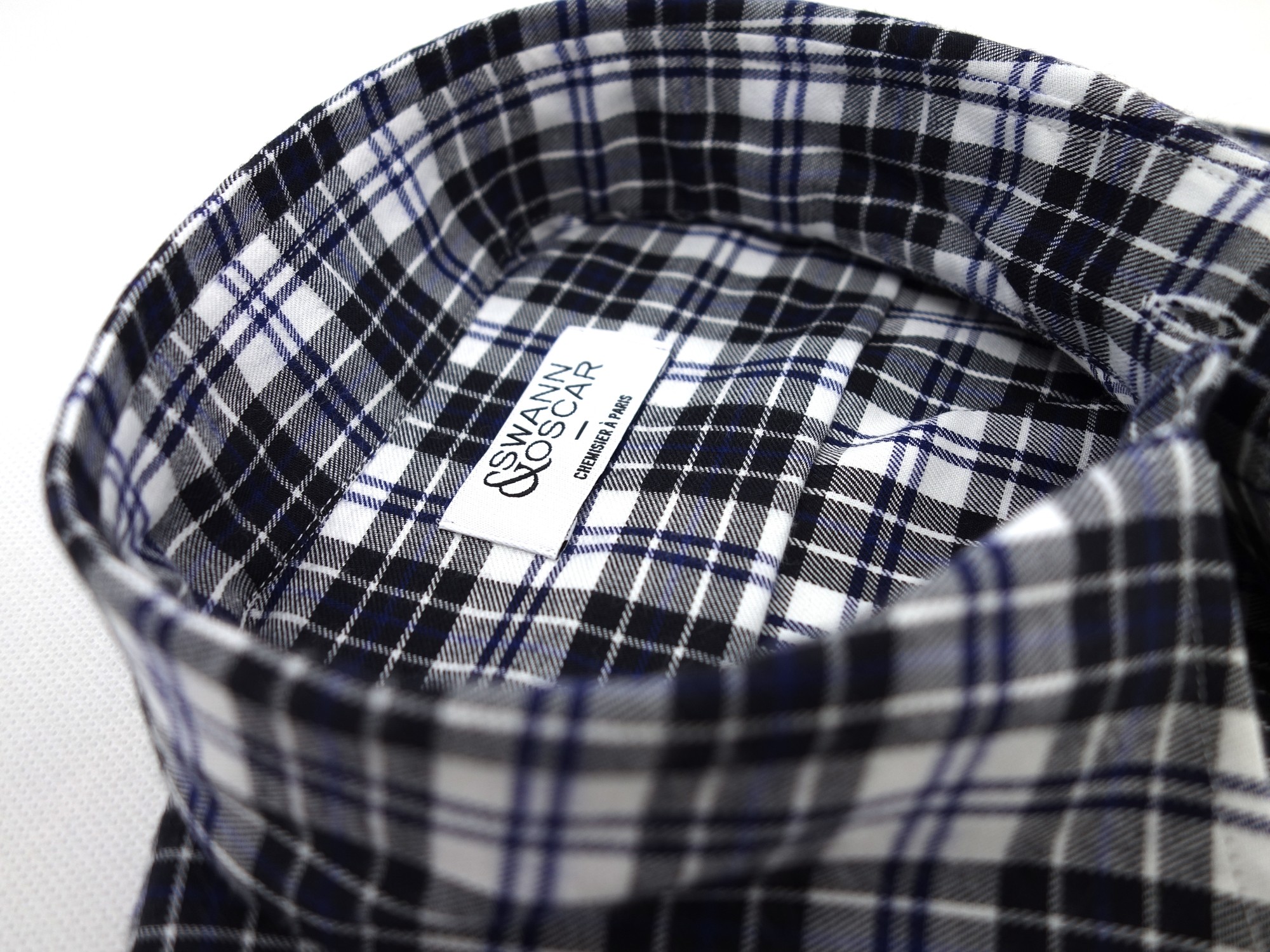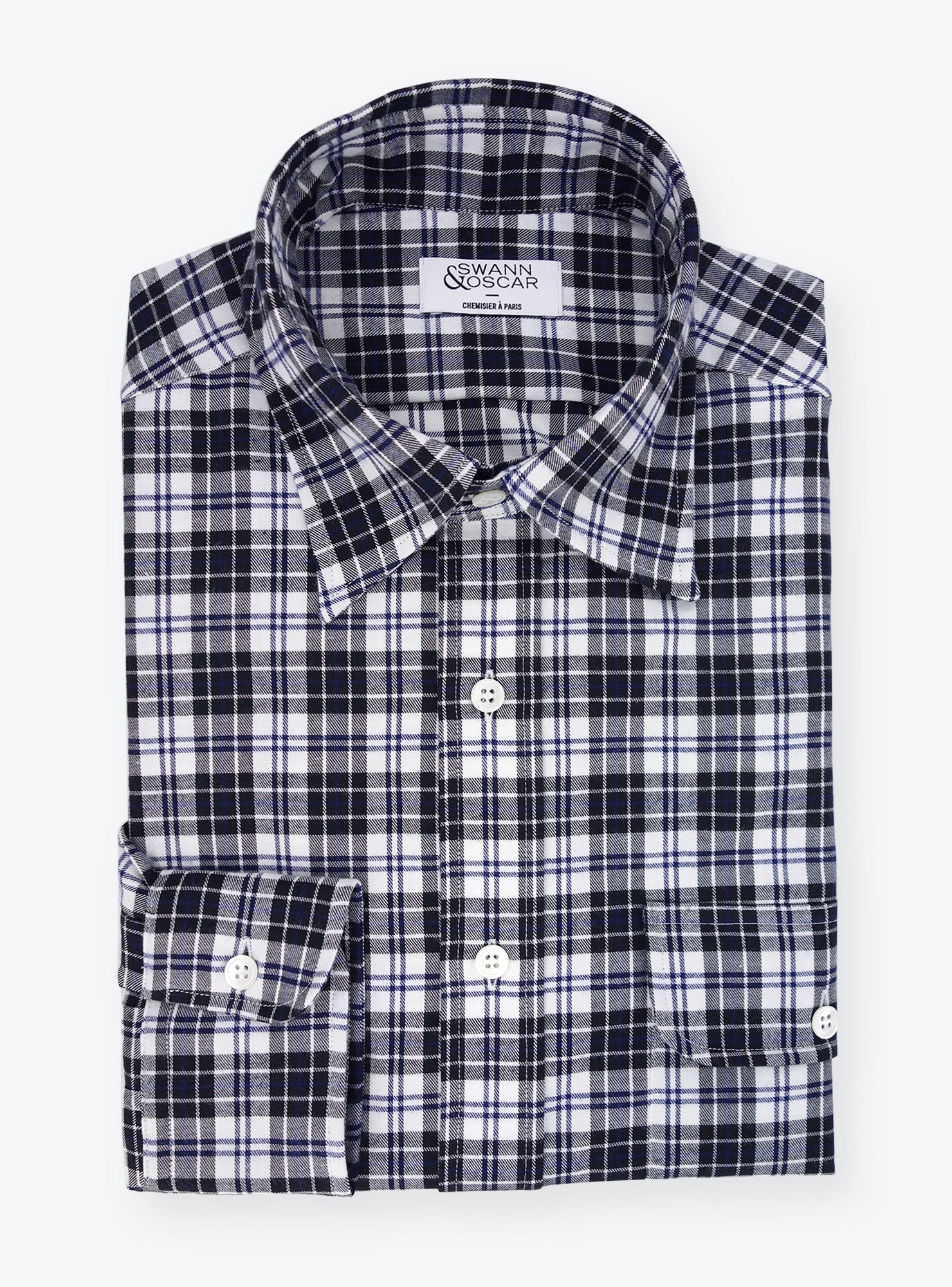 Flanelle de coton de chez Thomas Mason bleu et vert. Motif tartan dans les tons gris et noirs, une chemise qui vous accompagnera dans vos soirées d'hiver en ville comme à la montagne. Tissu doux sur la peau et très confortable pour l'hiver.