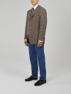 Veste droite 2,5 boutons beige en tweed à motif Gun Club Harris Tweed. Montage non construit, épaules sans épaulette, poches latérales plaquées, 1 fente dos, doublure intérieure entièrement doublée.