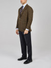 Veste droite 2 boutons beige en tweed à motif Gun Club Harris Tweed. Montage non construit, épaules sans épaulette, poches latérales plaquées, 1 fente dos, doublure intérieure entièrement doublée.