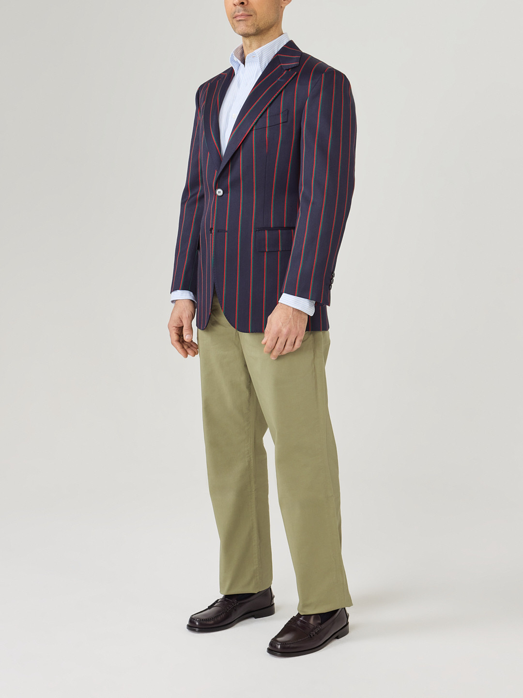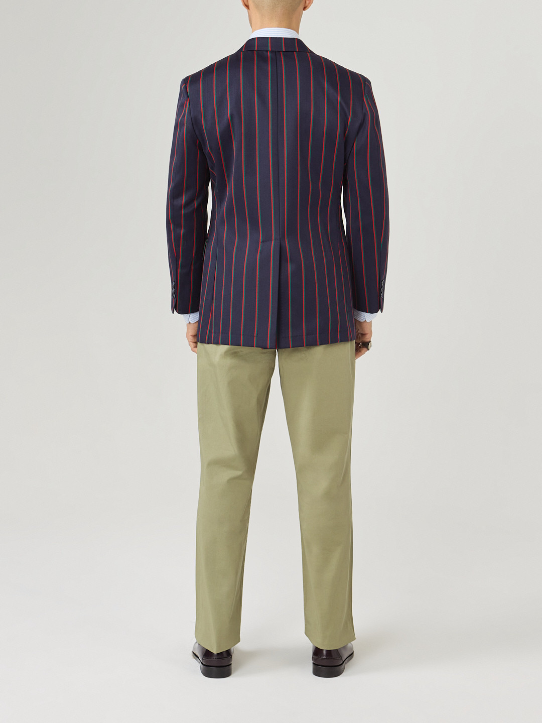 Né sur les berges de la Tamise à la fin du XIXe siècle, le rowing blazer était l’apanage des clubs d’aviron. Chaque équipe avait ses rayures, ses couleurs, ses insignes — une veste identitaire, fièrement portée entre deux courses.