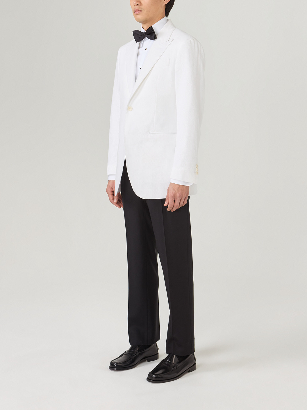 Tous nos vêtements sont coupés à la demande, nous pouvons donc réaliser la coupe ou le style que vous souhaitez indépendamment des modèles présentés ici. Demandez-nous.