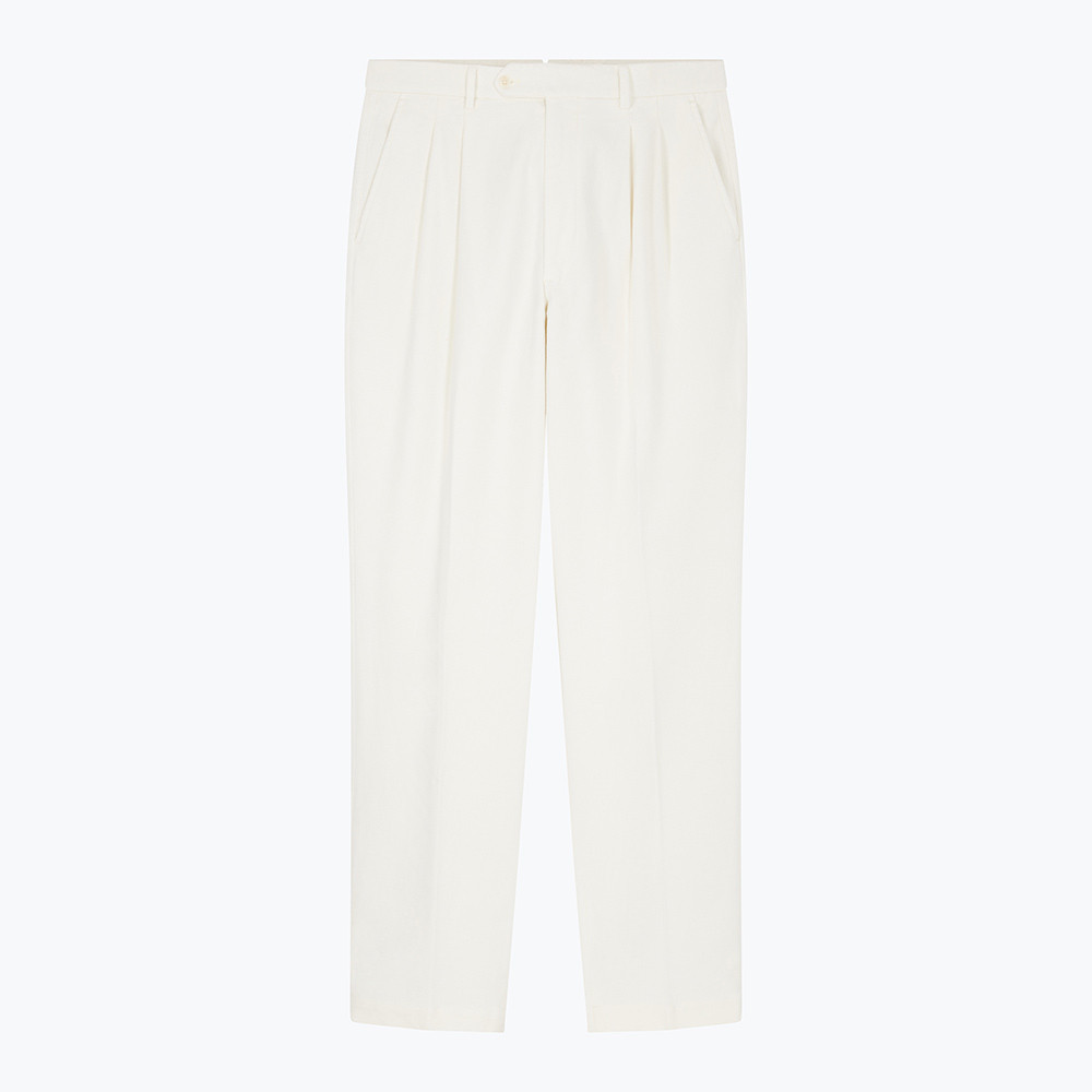 Chino en moleskine avec pinces, plus formel et plus habillé que le chino classique il apporte une touche rétro à une silhouette qui peut être qualifié de sport chic. Idéal pour remplacer un pantalon classique au bureau avec un blazer ou une veste sport, il est aussi particulièrement apprécié le week end et lors d’événements plus champêtres (golf, polo ou mariage décontracté). Le moleskine sera très agreable à porter lors des saisons plus fraiches.