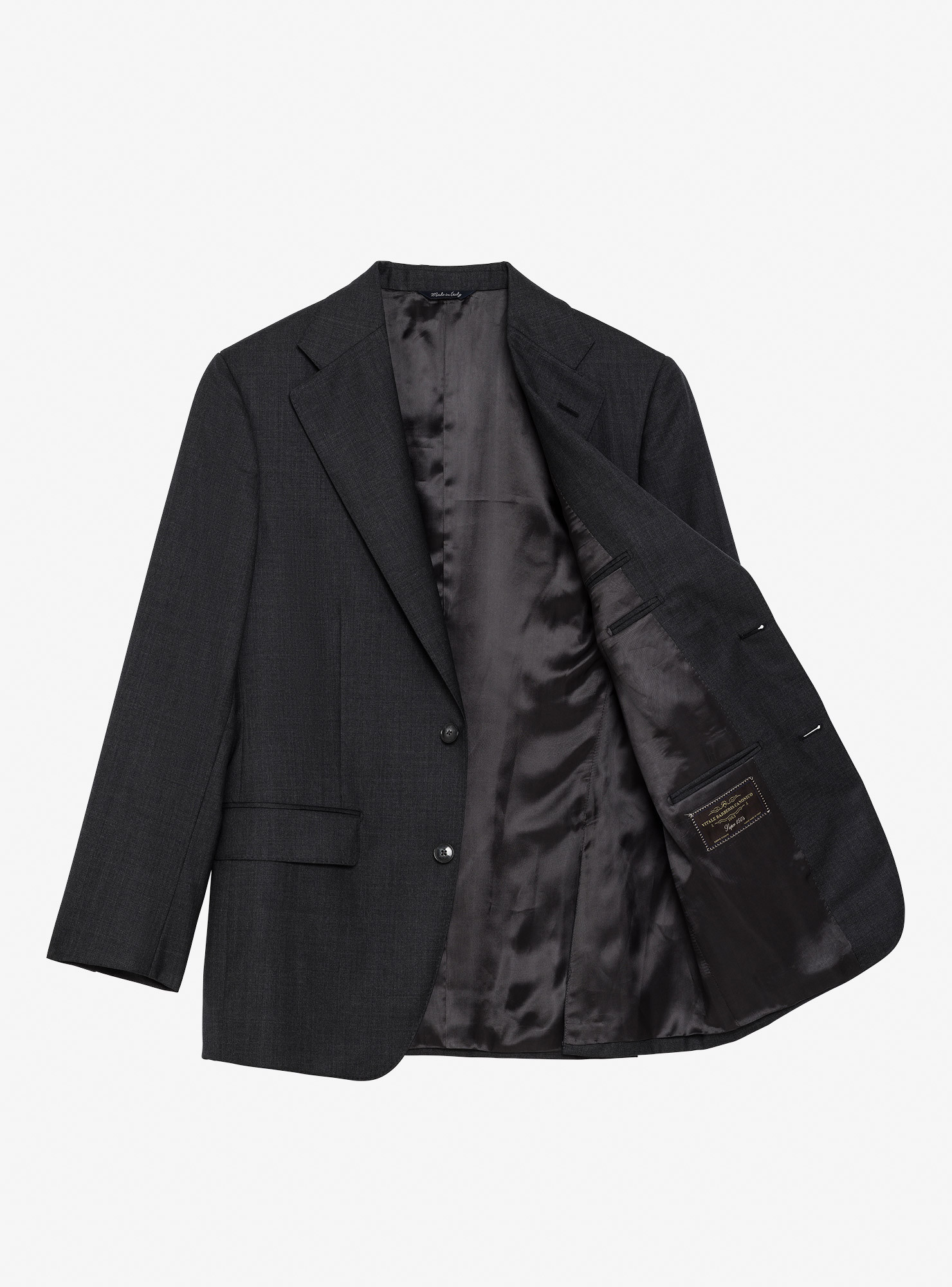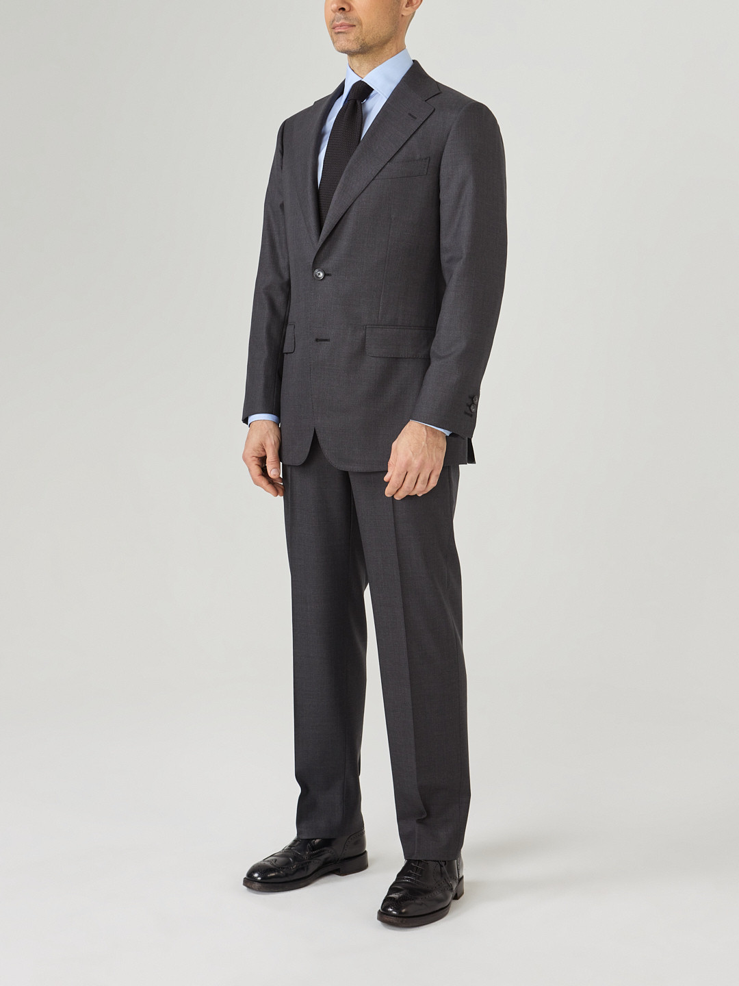 Si depuis quelques années le costume marine semble être devenu une sorte d’uniforme, le costume gris reste incontestablement le costume classique par excellence. Ce qui rend ce costume gris particulièrement beau, c’est sa capacité à capter la lumière d’une manière subtile et sophistiquée, une élégance discrète. Coupé dans une laine super 150’s, notre costume gris est léger, souple avec un éclat et un drapé particulier. Il est monté en Italie et 100% entoilé.